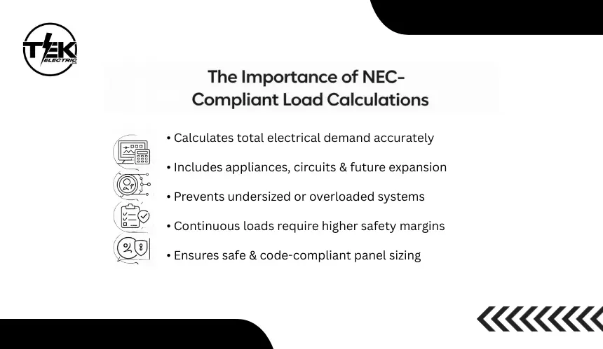 An electrical panel upgrade begins with precise load calculation based on the National Electrical Code (NEC).